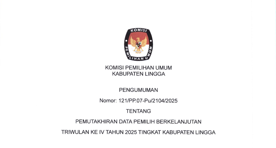 Pengumuman Pemutakhiran Data Pemilih Berkelanjutan Triwulan ke IV Tahun 2025 Tingkat Kabupaten Lingga