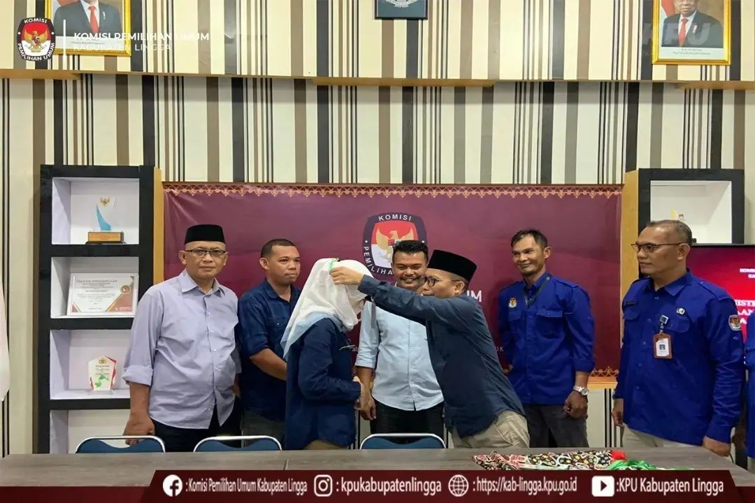Daik Lingga, Kab-lingga.kpu.go.id - Pada hari Rabu, 17 Agustus 2022 Komisi Pemilihan Umum melakukan penyerahan secara simbolis SK dan Name tag kepada verifikator yang akan melakukan verifikasi administrasi Partai Politik calon peserta Pemilu Tahun 2024 yang dimulai sejak tanggal 16 Agustus 2022. Tahapan Pemilu ini akan berlangsung selama 14 hari, pada kegiatan ini tim verifikator yang telah ditunjuk akan mengecek keabsahan administrasi Partai Politik yang telah meraka unggah di Sistem Informasi Partai Politik (SIPOL), bagi Partai Politik yang belum memenuhi syarat akan dilakukan perbaikan pada tahapan verifikasi administrasi perbaikan.