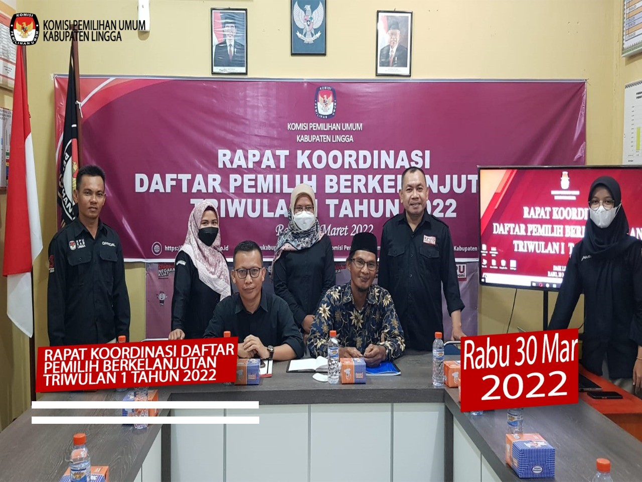 Daik Lingga, kab-lingga.kpu.go.id - Rabu (30/3) KPU Kabupaten Lingga melaksanakan Rapat Koordinasi Daftar Pemilih Berkelanjutan Triwulan I Tahun 2022 bertempat di ruang rapat sekretariat KPU Kabupaten Lingga. Rapat tersebut dihadiri oleh Ketua, Anggota, Sekretaris, Kepala Sub Bagian, Staf Sekretariat KPU Kabupaten Lingga beserta Stakeholder yang diundang yaitu Bawaslu Kabupaten Lingga, Disdukcapil, Polres Lingga, Dandim Tanjung Pinang, Kesbangpol, Lapas Dabo, Dinas Pemberdayaan Masyarakat Desa (DPMD).
