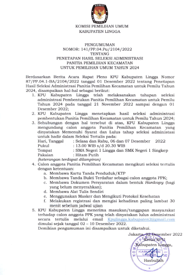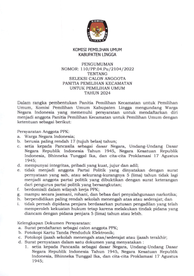 Download Pengumuman Nomor : 114/PL.01.3-PU/2104/2022