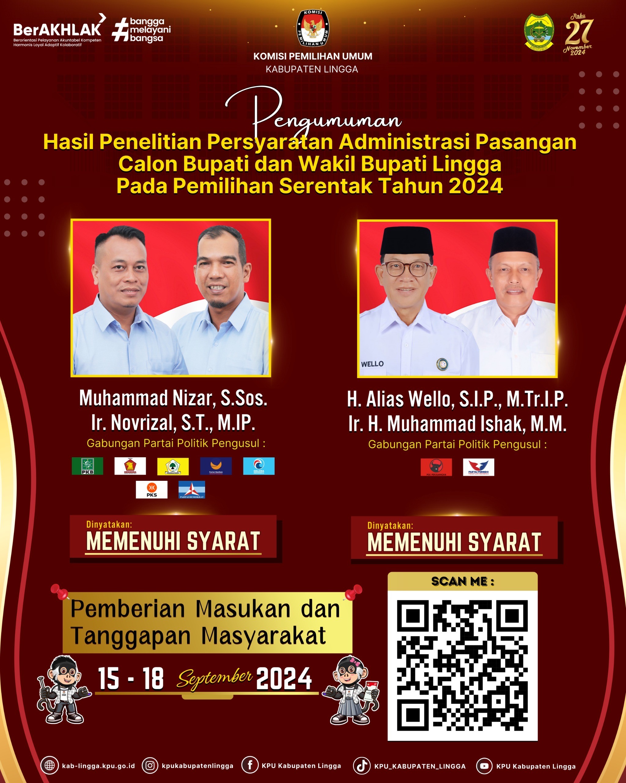 Komisi Pemilihan Umum Kabupaten LIngga telah mengumumkan perekrutan Petugas Pemutakhiran Data Pemilih (Pantarlih) Kabupaten Lingga untuk Pilkada 2024 pada tanggal 13 Juni 2024, dan kami mengharapkan agar petugas Pantarlih yang direkrut nantinya dapat melakukan tugasnya dengan sebaik mungkin. untuk informasi selengkapnya dapat dilihat melalui link di bawah ini.